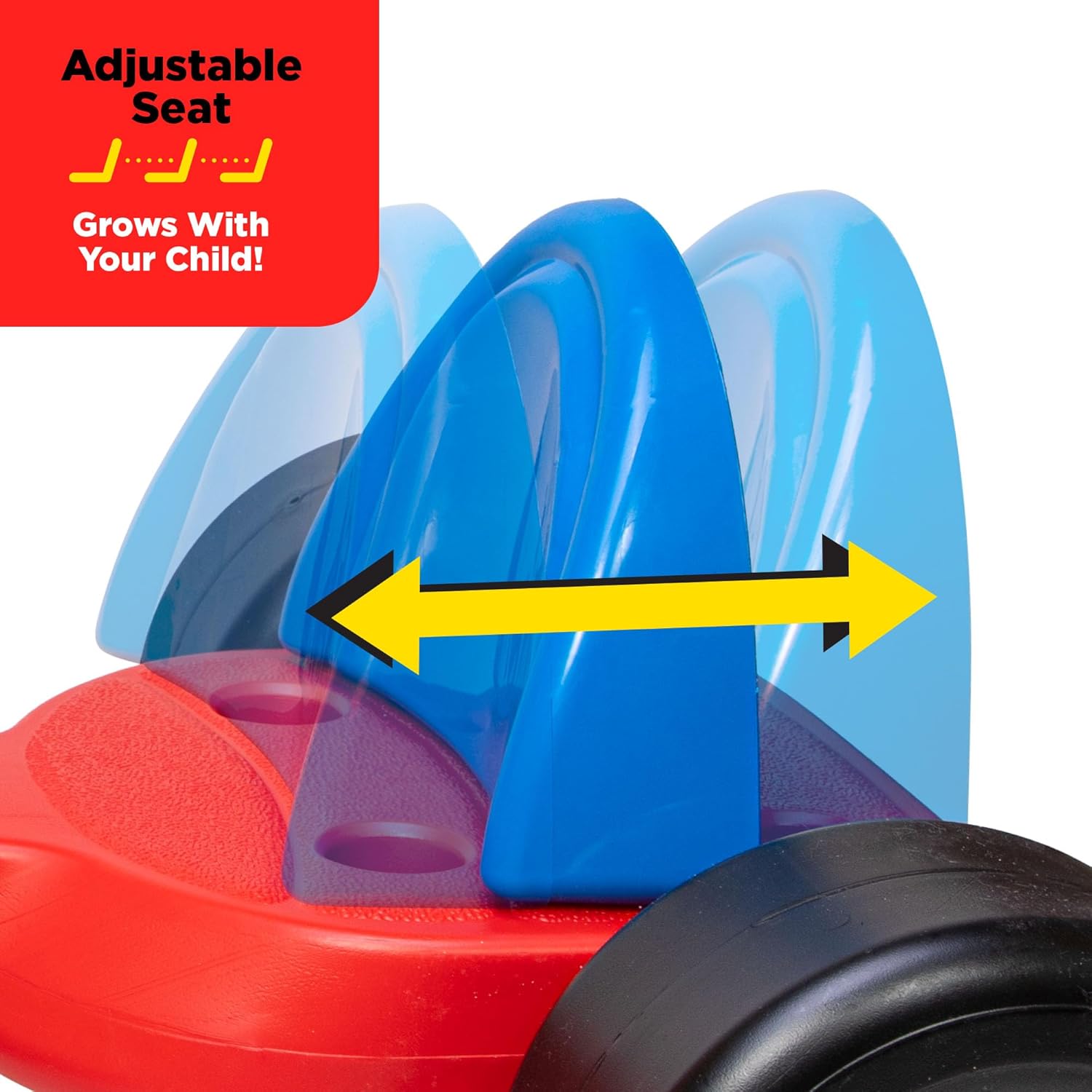 - Grows-with-Child adjustable seat; great for growing legs